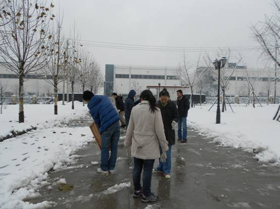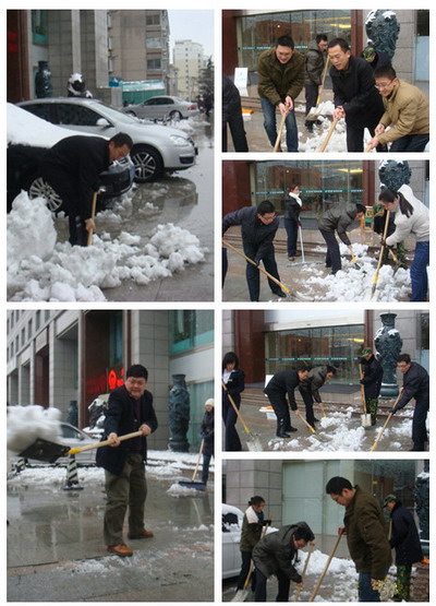 在公司領(lǐng)導(dǎo)的帶領(lǐng)下,大家揮舞著鐵鍬、掃帚,齊心協(xié)力清除積雪,天氣寒冷,整個(gè)勞動(dòng)現(xiàn)場(chǎng)卻熱火朝天,經(jīng)過(guò)近一個(gè)小時(shí)的清掃,大廈周邊地面已被清理干凈,確保了道路的暢通。